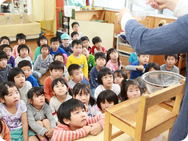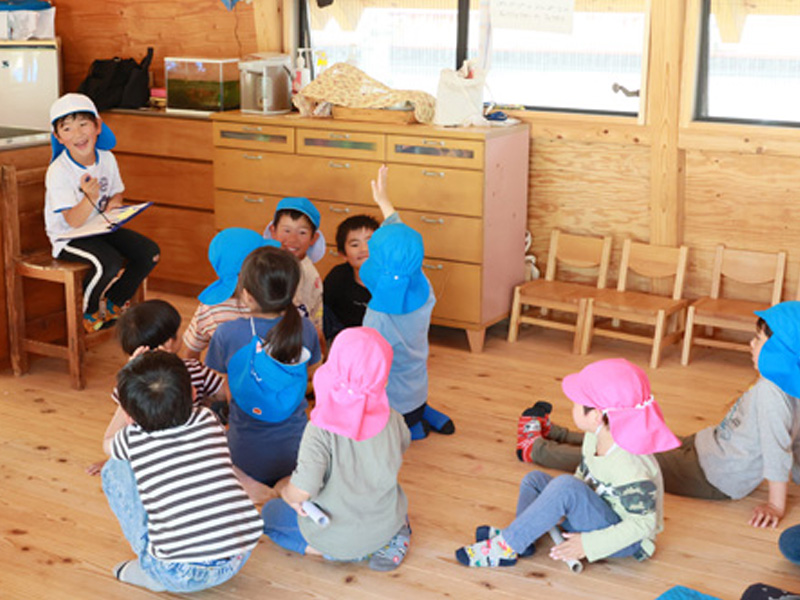 かたづけが終わるとそれぞれのクラスに集まります。絵本や歌やゲームなどを楽しむ時間や、その日にあった出来事について話し合いをしたり意見を出しあう時間を大切にしています。