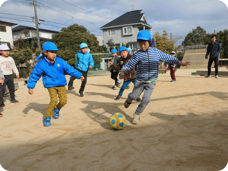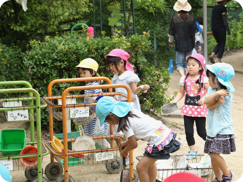 子どもたちは11時の片づけまで遊びつづけます(月曜日は10時10分に片づけ、11時に降園します)。