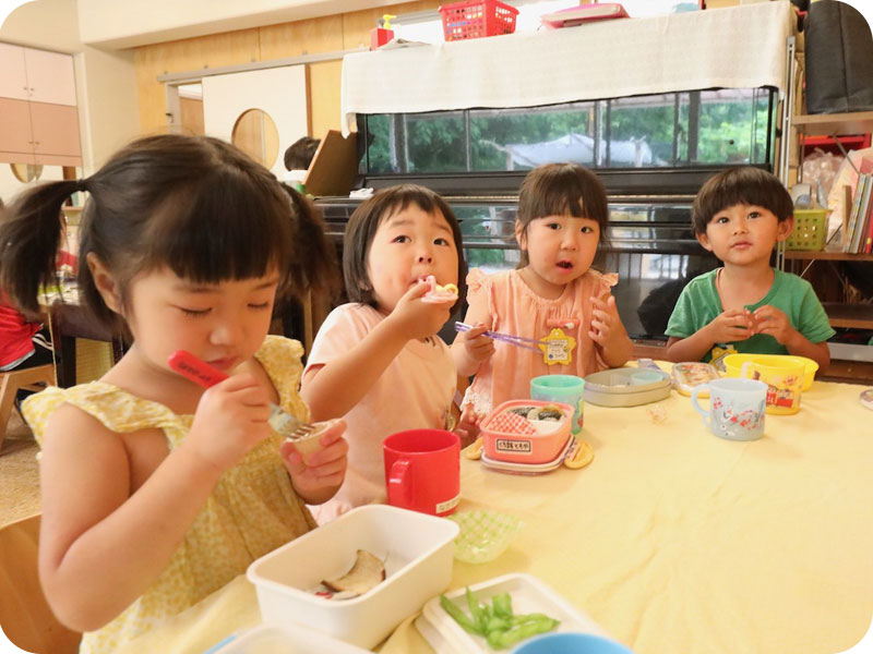 片づけを終えると、それぞれのクラスに集まります。そして、お弁当の時間。