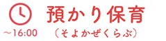降園は14:00です。また、14:00から16:00まで(月曜日は11:00から13:00まで)は、預かり保育も行っています(幼児教育無償化の対象です)。
